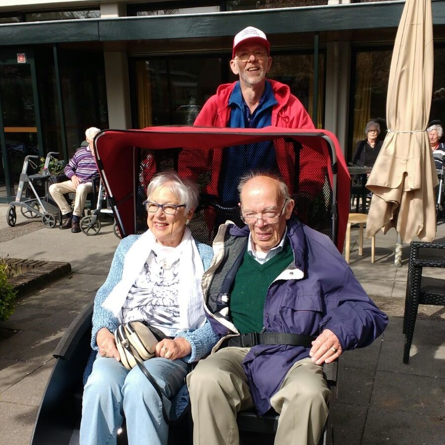 In Denemarken, waar het idee vandaan komt, zijn de riksja’s binnen een paar jaar een enorm succes geworden. En het effect op de oudere deelnemers is fantastisch: mensen die met bijna niemand meer praten, gaan dat weer doen, andere mensen die eenzaam en somber geworden zijn, komen weer vrolijk terug van hun fietstocht. Dat laatste geldt trouwens ook voor de vrijwilligers, voor wie de deelname zonder meer een verrijkende ervaring is.